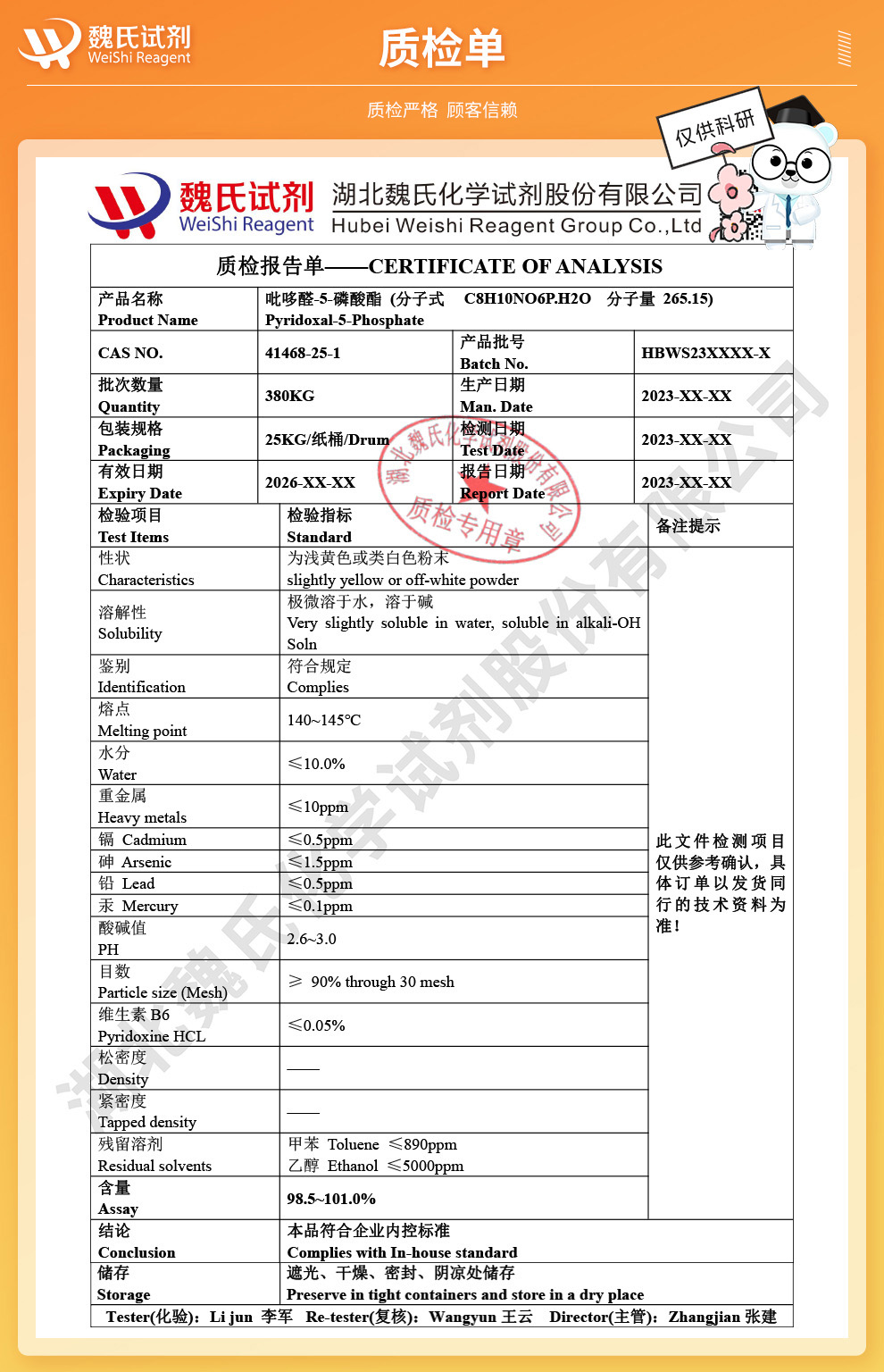 化学名 3-羟基-2-甲基-5-[(膦酰氧基)甲基]-4-吡啶甲醛一水合物