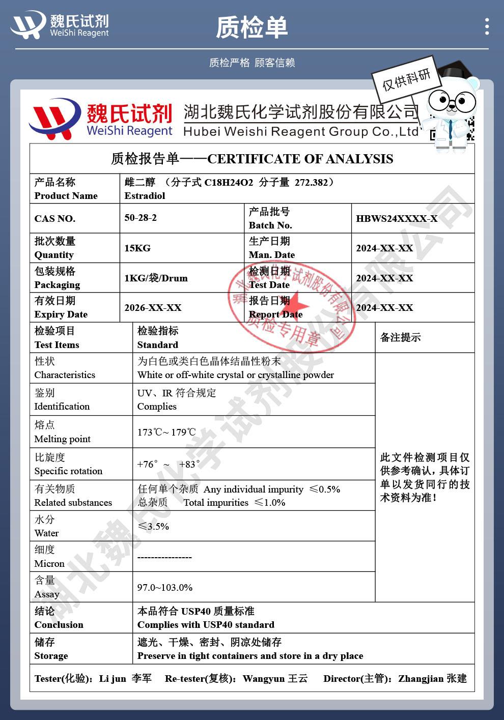 储存:遮光干燥密封储存