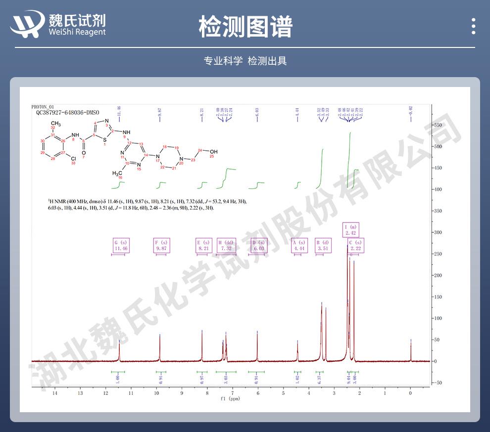 化学名 5-噻唑甲酰胺, N-(2-氯-6-甲基苯基)-2-[[6-[4-(2-羟基乙基)-1-哌嗪基]-2-甲基-4-嘧啶基]氨基]-