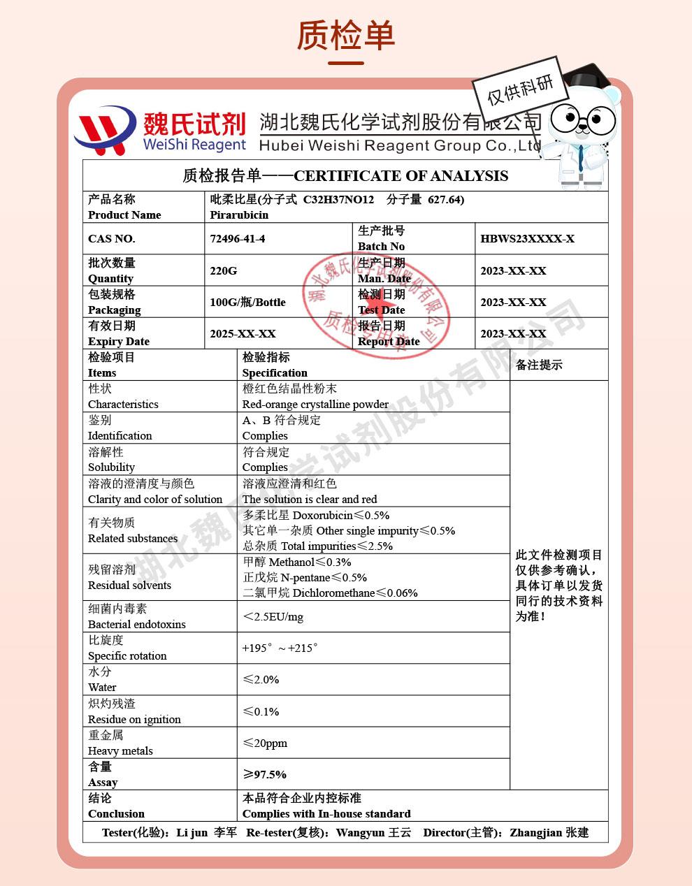 中文同义词:吡喃阿霉素、吡柔比星;吡柔比星;吡喃阿霉素;