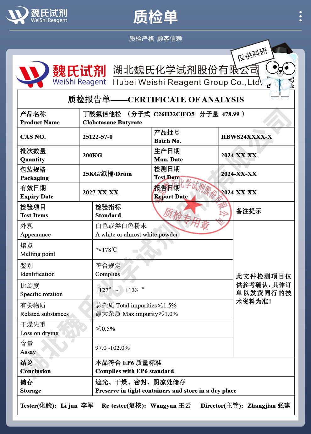 含量:97.0%~102.0%(实测99%以上)专业科学准确检测