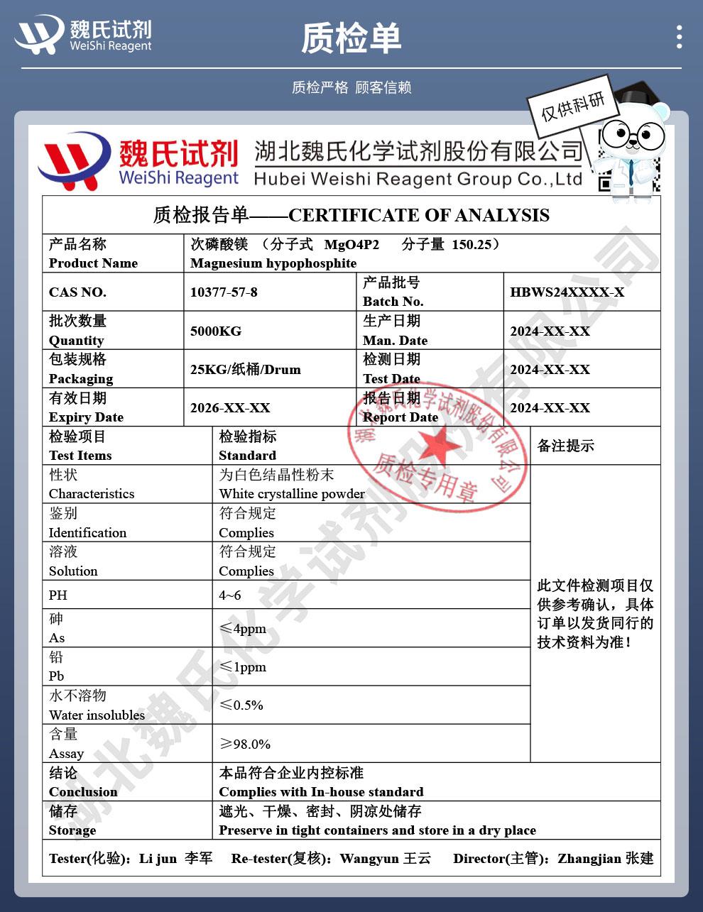 次磷酸镁科研试剂—10377-57-8