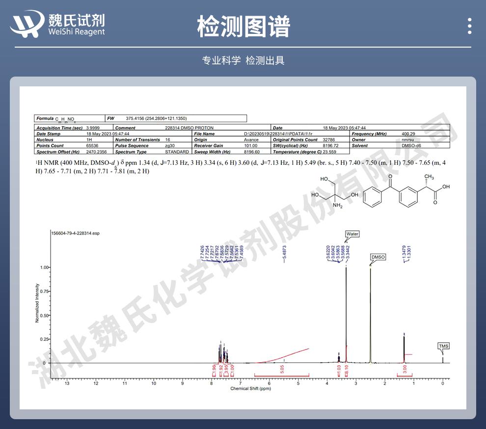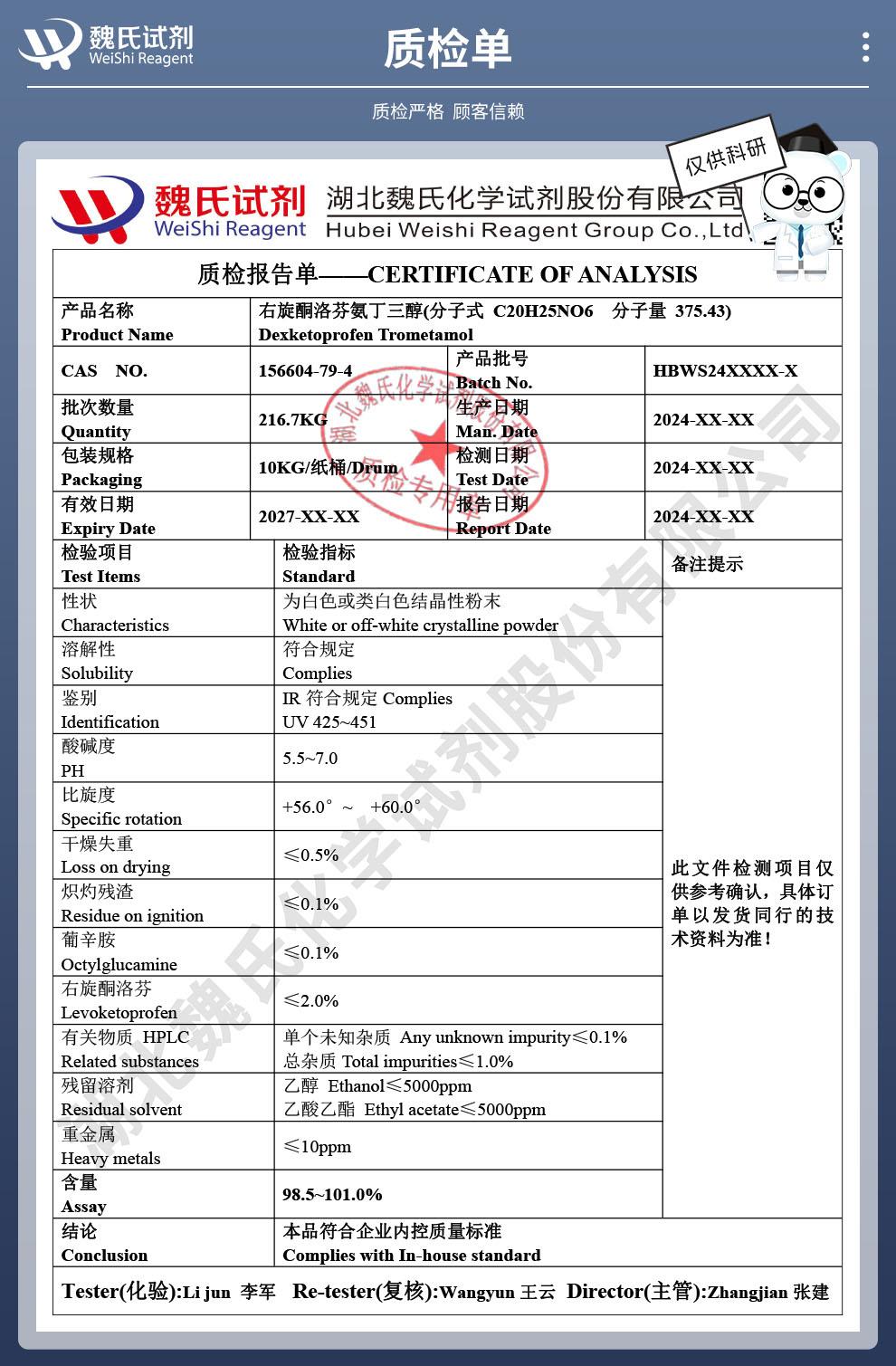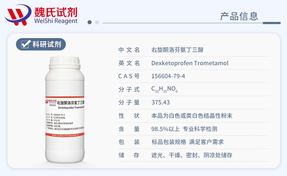 葡辛胺≤0.1% 右旋酮洛芬≤2.0% 干燥失重≤0.5%