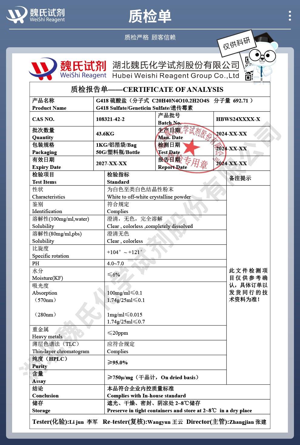 | 用途 | 现货用于外贸出口、科学研究和试剂生产等领域 |